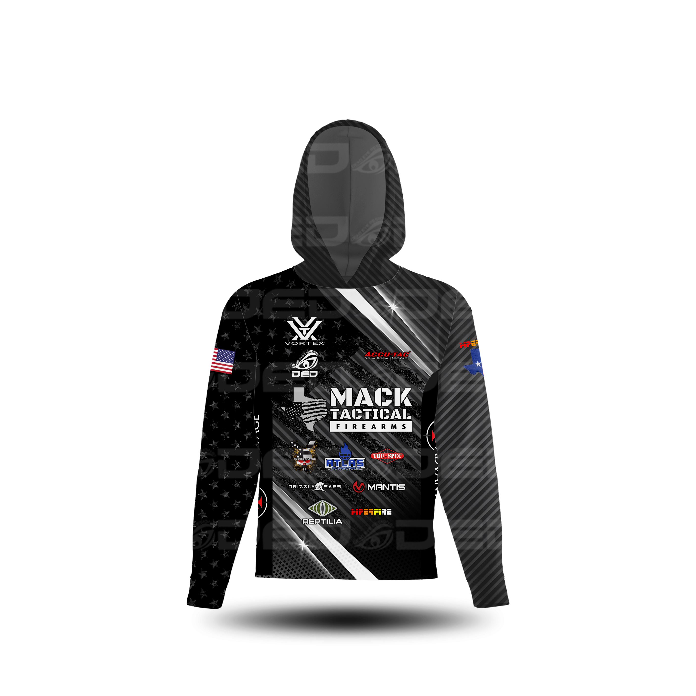 Dead Eye Designs (DED) and Eemann Tech Hoodie is based on our DED Technical Open Jacket. It features breathable side panels, 2 way stretch, semi fitted!